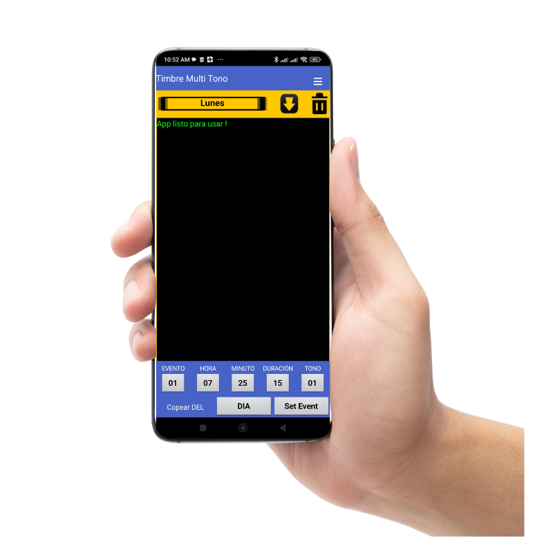 Toda la programación se realiza inalámbricamente utilizando el Bluetooth de los Teléfonos celulares Android. A una distancia máxima de 20 Metros.